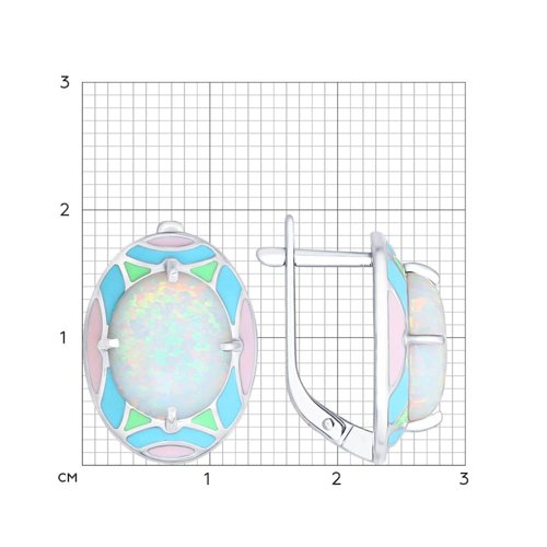 Серебряные Серьги Синтетический опал Эмаль (арт. 83020039)