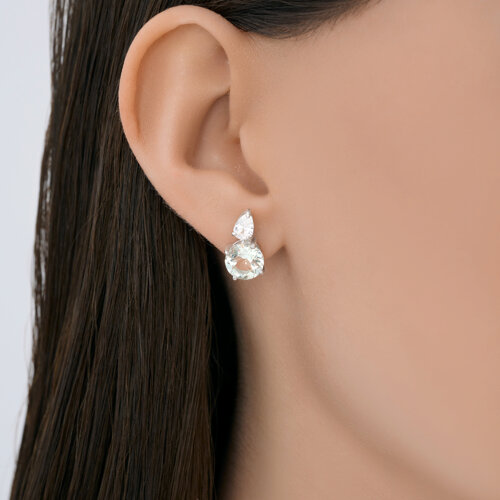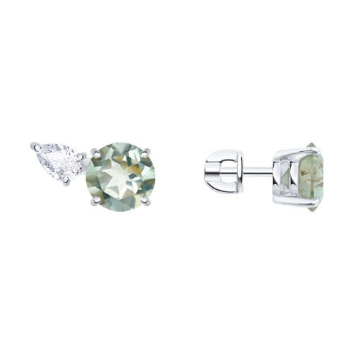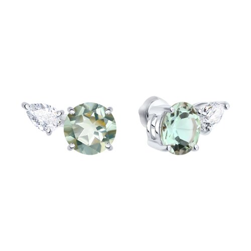 Серебряные Серьги Празиолит Фианит (арт. 92025326)