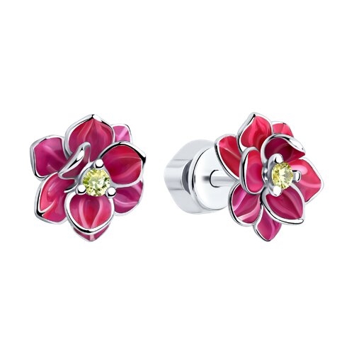 Серебряные Серьги Фианит Эмаль (арт. 94023338)